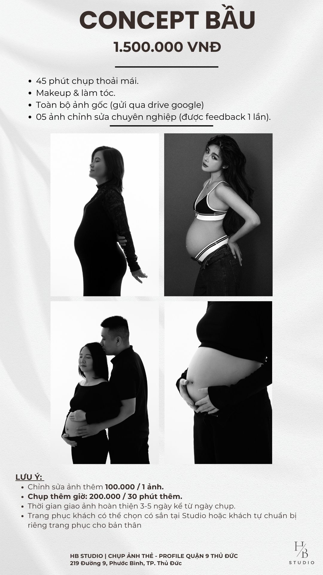 Tại HB Studio, chúng tôi tin rằng màu trắng đen là ngôn ngữ tốt nhất để kể câu chuyện về tình mẫu tử. Các mẹ sẽ được trải nghiệm: