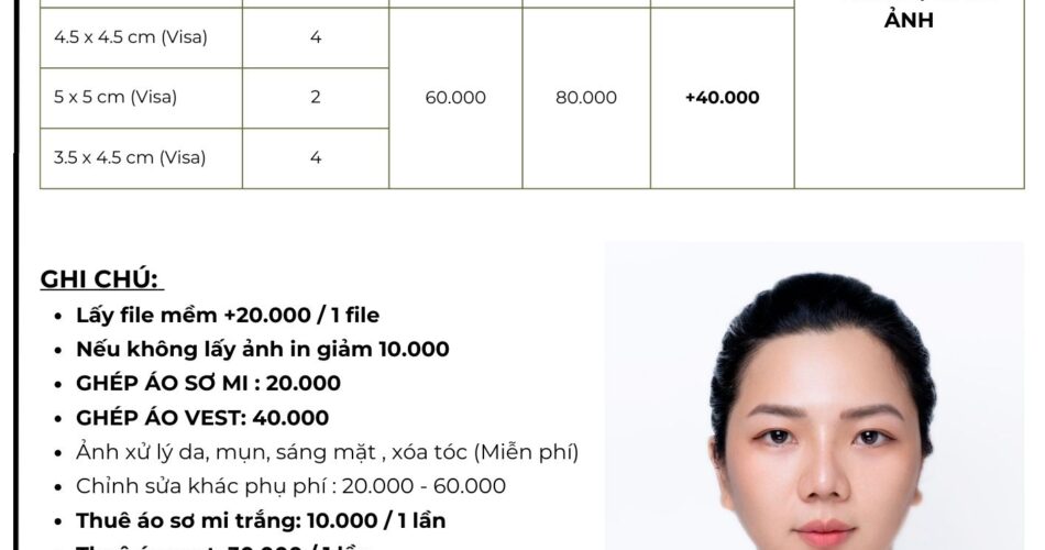 Bảng Giá Chụp Ảnh Thẻ 2025 – HB Studio