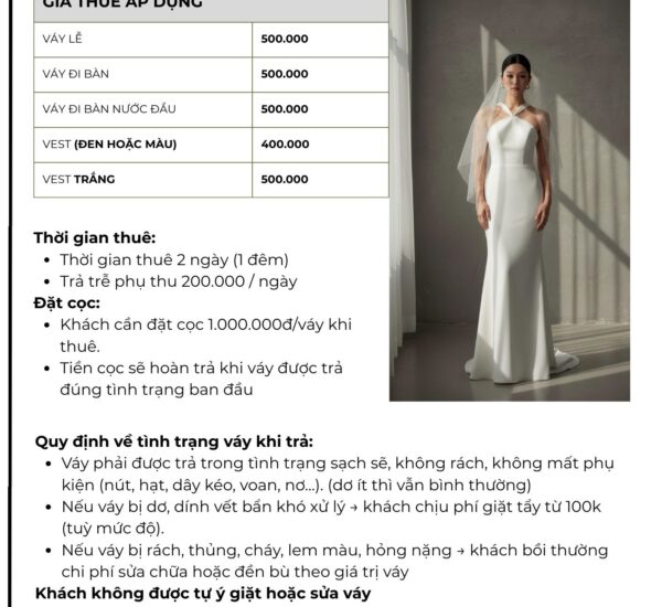 ⏰ Thời gian thuê: 3 ngày (tính từ ngày nhận váy – vest).